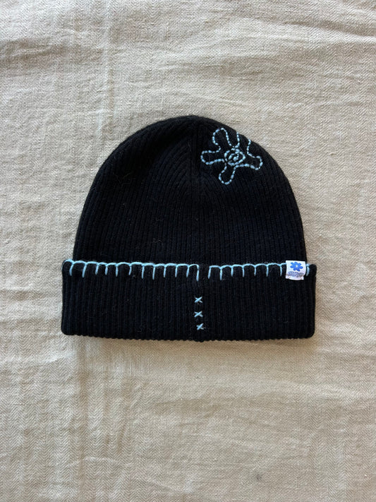 One-Of-A-Kind Flower Beanie, Black/Blue 1