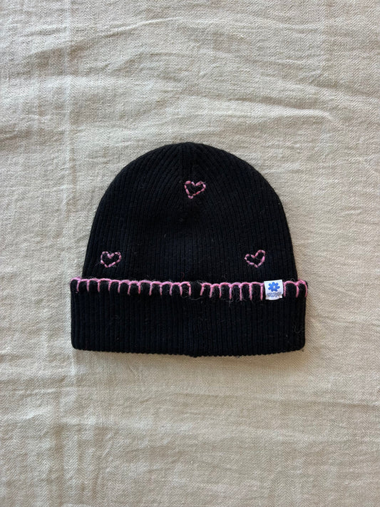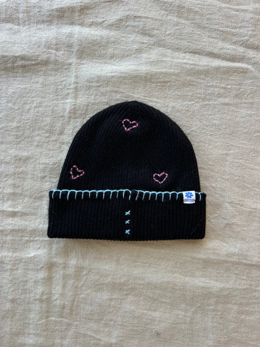 One-Of-A-Kind Heart Beanie, Black/Pink/Blue