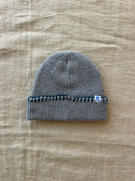 One-Of-A-Kind Grey/Teal Blanket Stitched Beanie