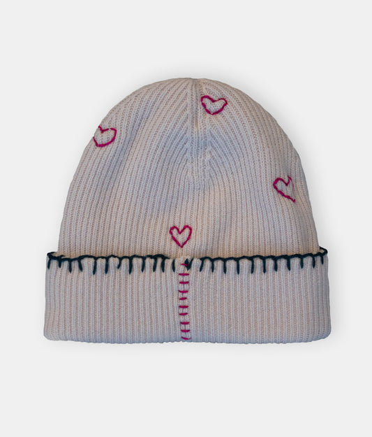 Wool + Cashmere Heart Beanie, Cream - PREORDER