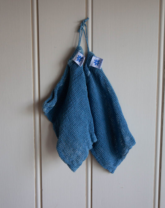 Indigo Dyed Plaid Cashmere Sweater, Small