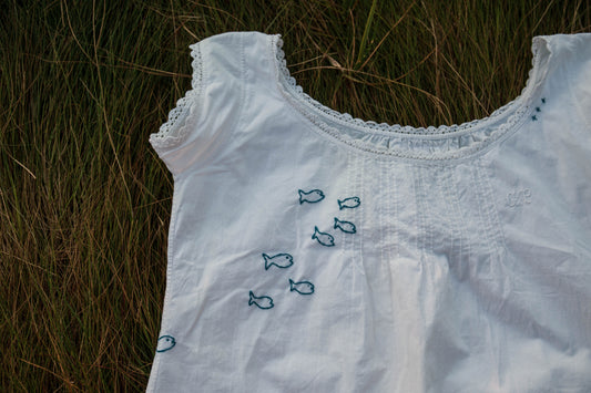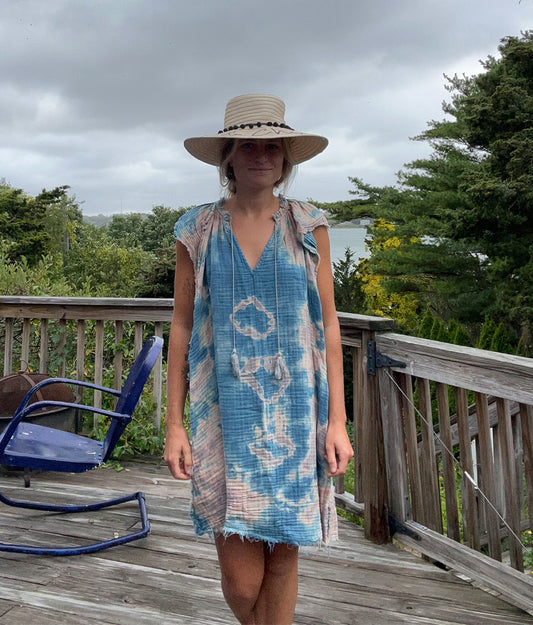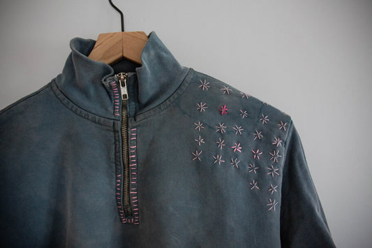 Indigo + Flower Power Stitched 3/4 Zip Sweatshirt