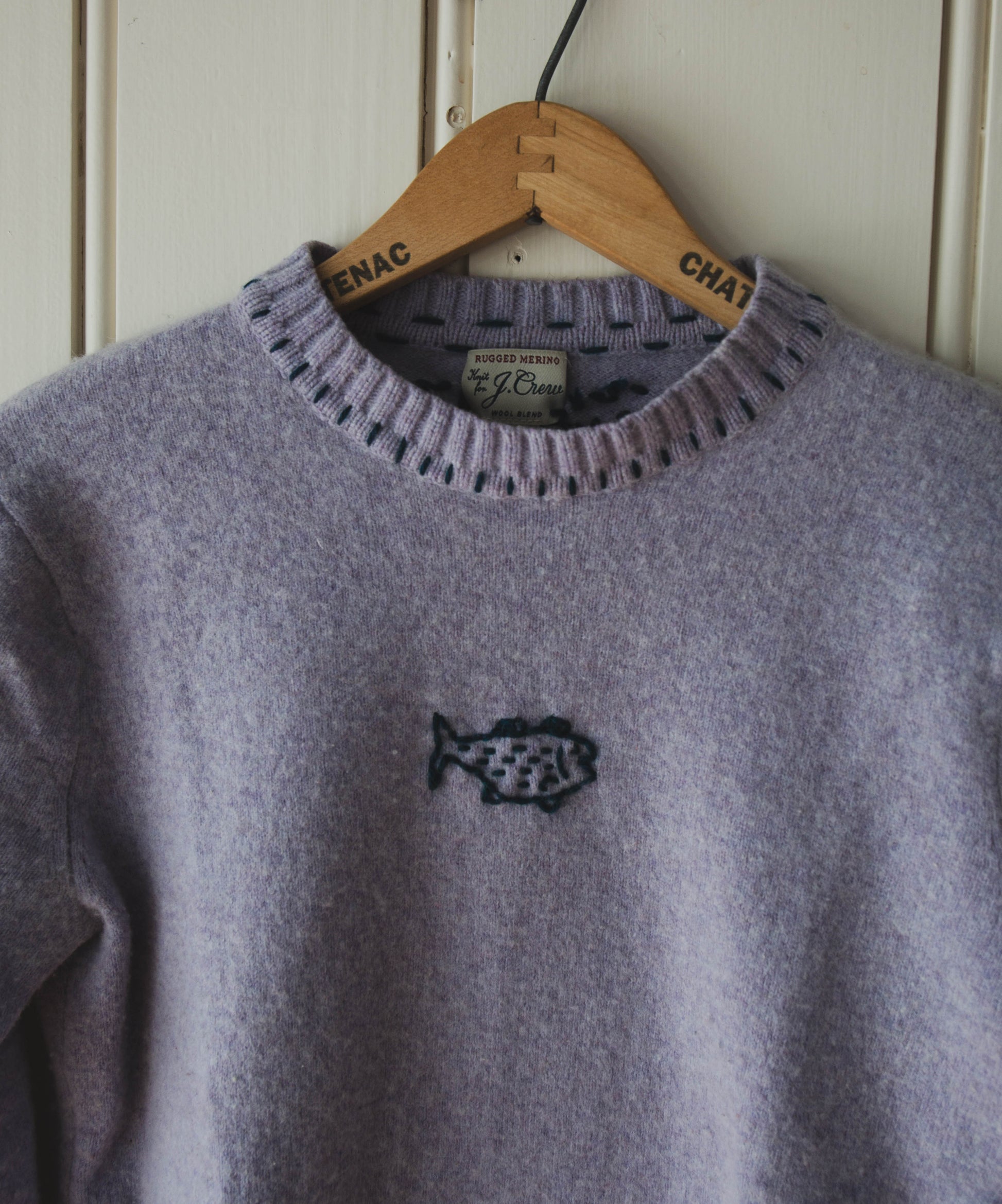 60% Merino wool, 40% polyamide, cashmere-like feel. Originally a J. Crew knit.