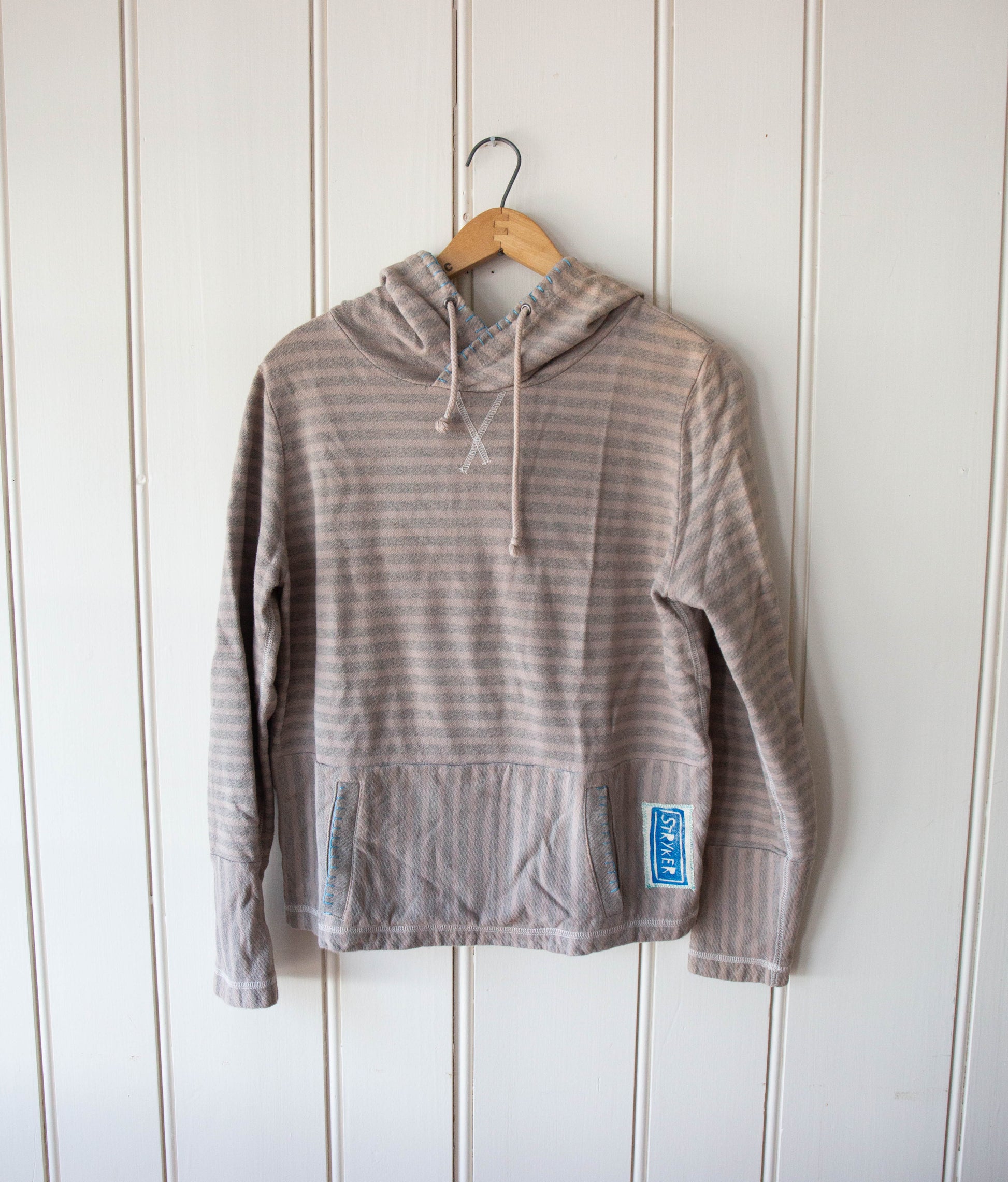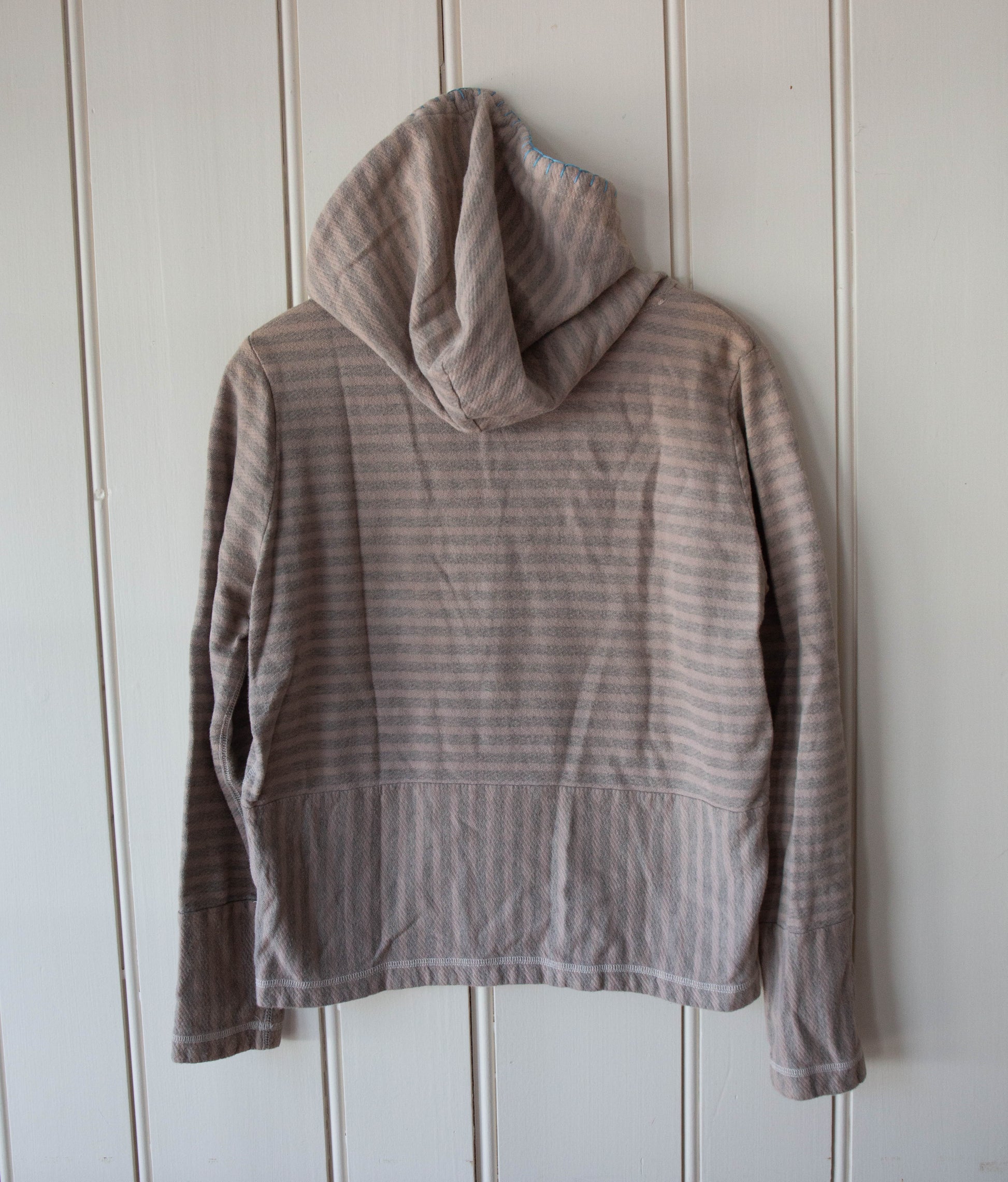 Naturally dyed with sequoia seed cones from California's reforestation project. Blanket stitched around the hood and pockets.